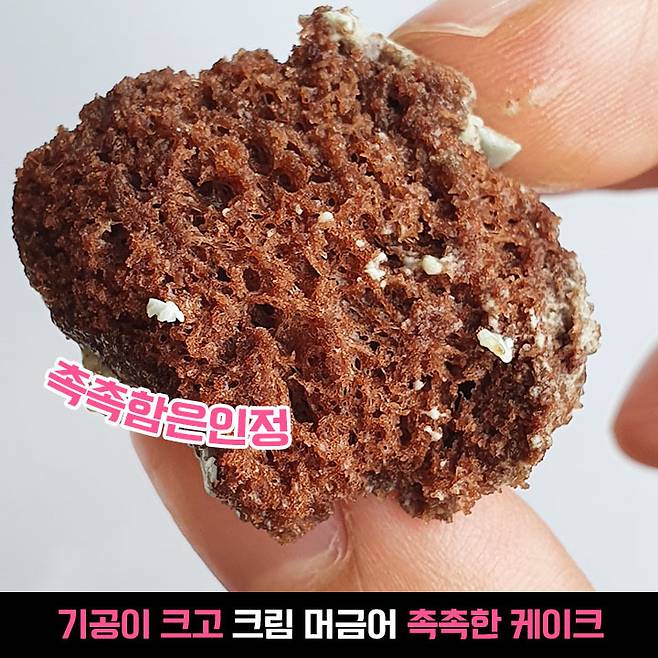 초코케이크 시트는 기공이 크고 말랑말랑 한 질감이라 크림을 잘 머금어서 아주 촉촉했어요! 사진으로 수분감이 표현이 잘되지 않아 아쉽네요ㅋㅋ 촉촉함만큼은 인정합니다. 요 시트만 계속 먹고싶을 정도?