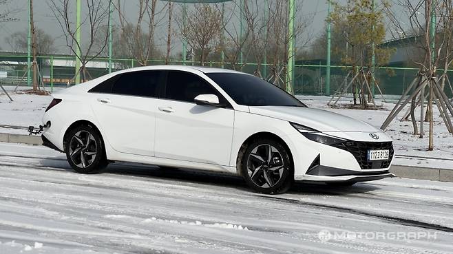 아반떼는 한국타이어 키너지 GT 사계절용 타이어가 장착됐다. 앞서 언급한 두 타이어의 특징을 고루 섞어놓은 모양새다.