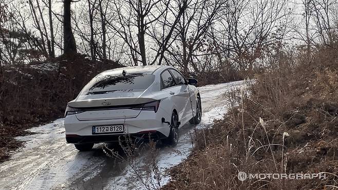 아반떼도 5시리즈처럼 저속 주행에서는 미끄러지지 않고 잘 나아갔다. 방향 전환도 부드럽다. 다만, 제동에는 취약했다. 20~30km/h에서 제동 시 ABS가 작동하며 한참을 밀려갔다.