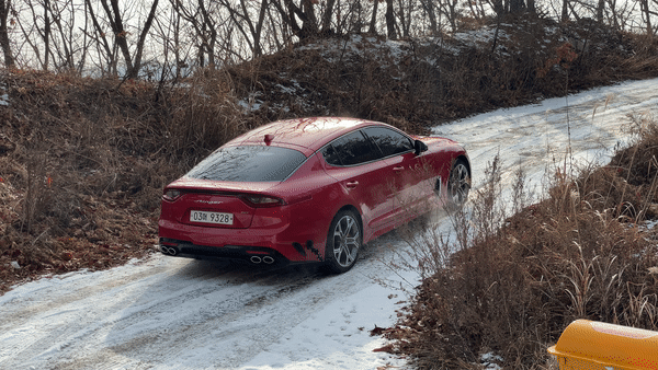 눈길에서 고립됐을 때 자세제어장치(ESC)를 해제하는 편이 더 유용하다. 여름용 타이어가 탑재된 스팅어도 ESC를 해제하니 바퀴가 빠르게 헛돌며 눈을 파헤치고 움직이기 시작했다.