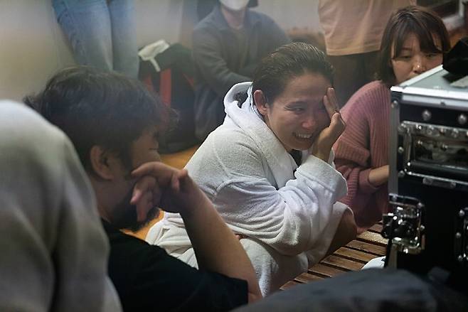 남편과 연극 작업 당시부터 함께했다. 어느새 10년이 넘어서, 눈빛만 봐도 뭘 원하는지 잘 알고 있다. 연극 무대와는 다른 시스템이지만 편안하게 잘했다.