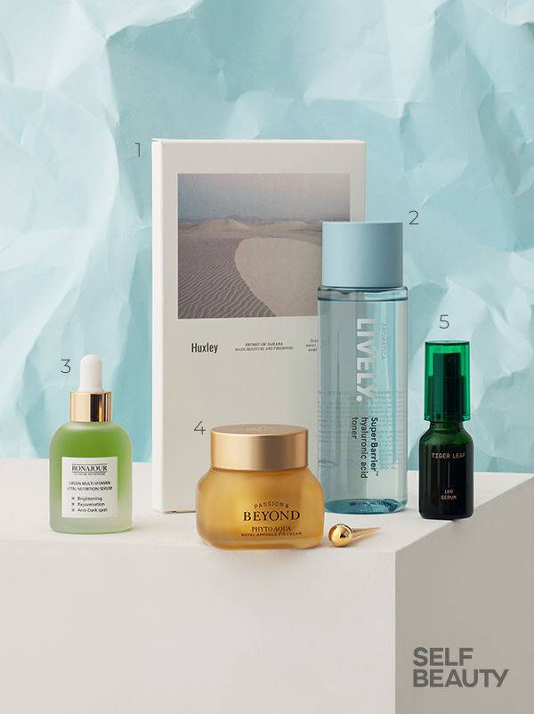 1. 피부 진정 및 수분 공급에 효과적인 블루 컬러 성분이 함유된 워터 에센스를 수분 전달력이 높고 밀착력이 우수한 스키니 시트에 담아 유효 성분을 빠르게 흡수시키는 헉슬리의 마스크 ; 모이스처 앤 프레시니스 25mlx3매 27,000원.