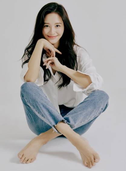 공개된 사진에는 김재경이 깔끔한 하얀색 셔츠에 청바지를 입고 편안하게 앉아있는 모습이 담겼다.