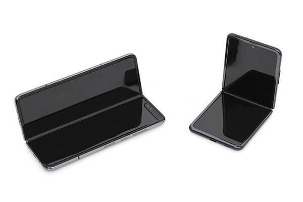 갤럭시Z플립은 상하로 접는 방식을 취하고 있다. 즉, 펼쳤을 때 가운데의 좌우로 이어지는 수평선이 접히는 중심이 되어서 옛날 피처폰 시절의 폴더폰처럼 접히는 셈이다. 지난해 먼저 출시된 갤럭시 폴드의 경우 좌우로 접는 방식을 사용해 휴대전화를 접는다는 느낌보다는 태블릿PC를 접는 것 같은 모양이었다.
