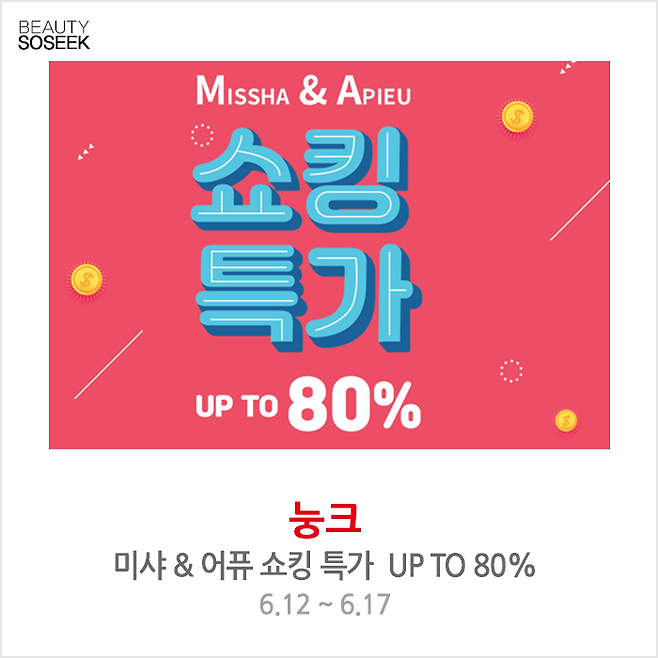 눙크 미샤 & 어퓨 쇼킹 특가 UP TO 80%