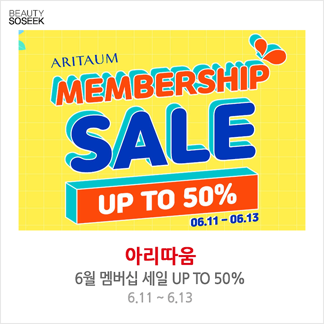 아리따움 6월 멤버십 세일 UP TO 50%