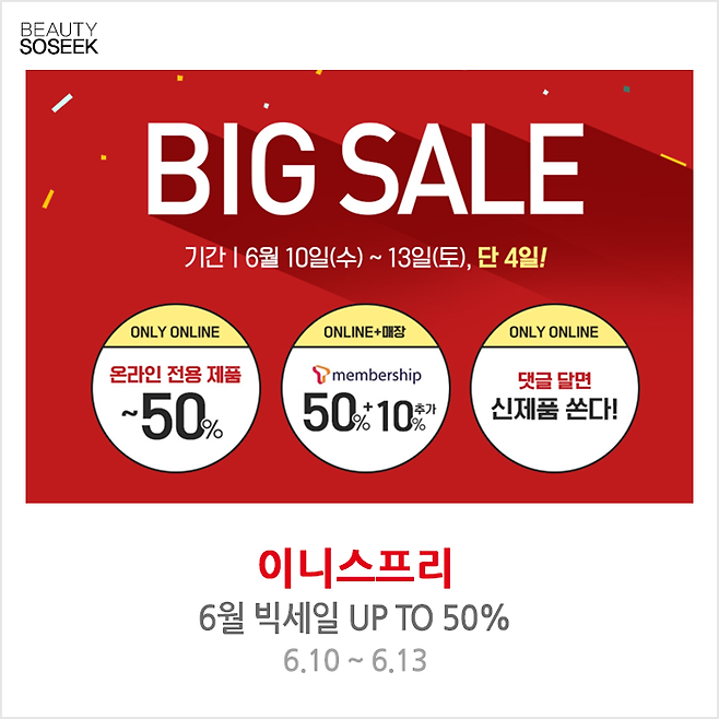 이니스프리 6월 빅세일 UP TO 50%