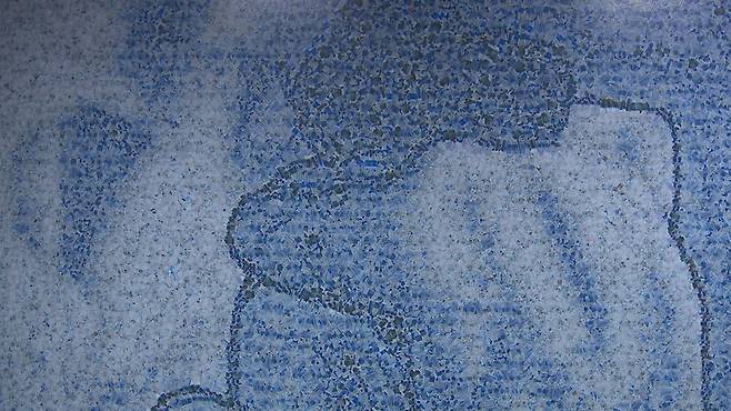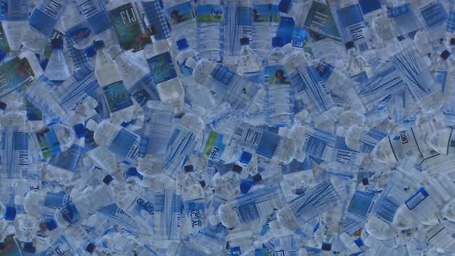 그러니까 여의도 면적에 조금 못 미치는 넓이에 들어찬 플라스틱의 총량이 작품에 쓰인 겁니다.
