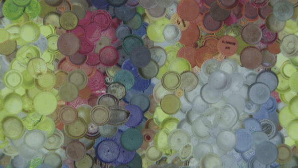여기에는 미국에서 30초마다 소비되는 페트병 뚜껑 개수인 만 6천 개가 들어 있고요,