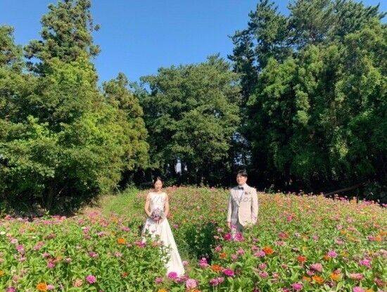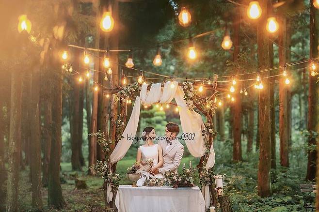 두 번째 장소는 말도 많고 탈도 많았던 대관한 카페예요. 사람이 없어서 사진 찍기는 좋았지만 나무들이 많아서 모기 물리기 진짜 최적의 장소였습니다. 중간에 기피제를 뿌렸는데도 모기 밥이 되었어요. 얼굴을 가려서 올리다 보니 좀 느낌이 덜 나지만 이런 느낌으로 찍기를 바라서 그리너리 스냅 작가님을 선택했어요. 저는 제주도에서 스몰웨딩이나 결혼식을 하거나 피로연을 한다면 이런 느낌이겠구나! 하는 사진을 실컷 찍을 수 있었습니다.