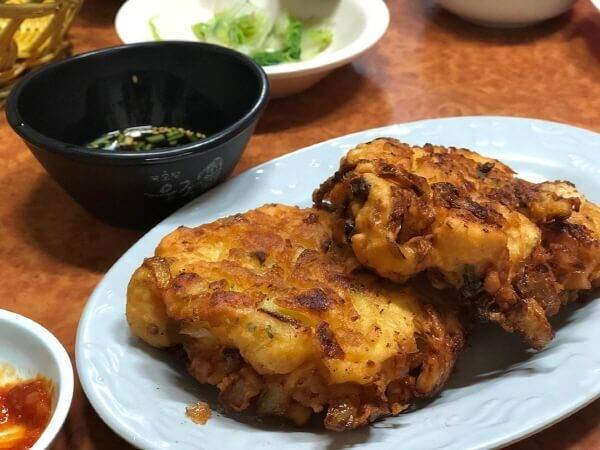 일반적으로 흔히 볼 수 있는 빈대떡과 조금 다른 비주얼의 빈대떡을 먹을 수 있는 가게다. 보통 속재료들을 한꺼번에 넣어 섞은 반죽을 굽는 방식이지만 이곳은 속재료를 중간에 넣고 아래 위로 반죽을 덮어 낸 모양이다. 반죽이 소량으로 들어가기 때문에 얇고 아주 바삭하며 중간에 들어 있는 속재료는 촉촉하고 푸짐하다. 굴과 해물이 들어간 빈대떡과 고기와 김치가 들어간 것이 있으며 각종 파전도 골고루 있다. 미역국과 깍두기, 양파간장도 밑반찬으로 함께 나온다.