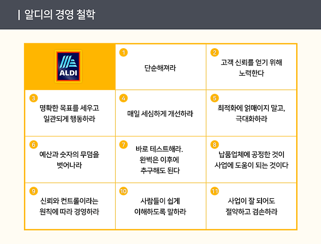 ▶ 알디 성공의 비결, 글로벌 소싱 PB 상품과 비용 절감 BM(비즈니스 모델)