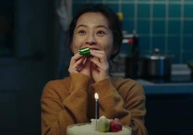 존경하던 회사 상사인 김 팀장(박성연) 회사에 합류할 기회를 얻은 지영이 남편, 아영이와 축하파티를 하는 장면.