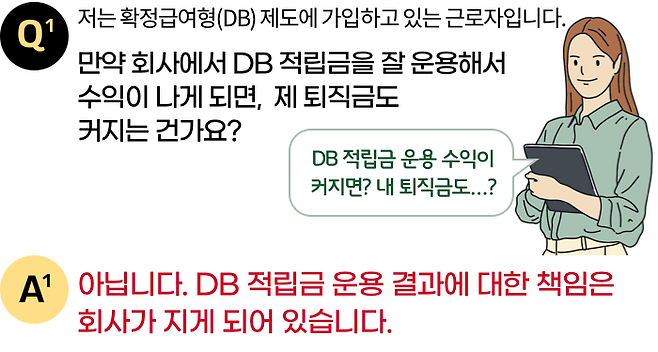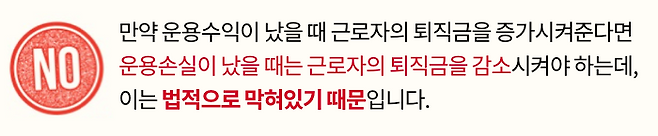 (다만, 운용수익이 많이 날수록 회사의 비용이 그만큼 줄어들기 때문에 회사 경영에 도움이 되므로, 근로자에게도 간접적인 효과가 있을 거예요~)