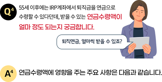 연금수령액은 연금수령 옵션을 어떻게 설계하느냐에 따라 달라질 수 있습니다.