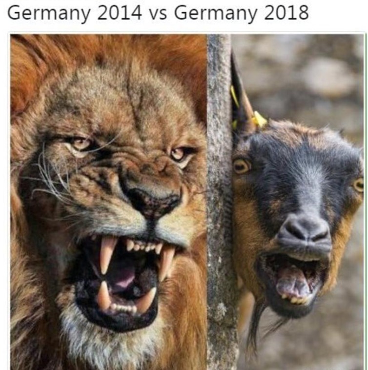 2014년 우승했을 당시 독일팀을 사자에 비유. 2018년 16강 진출에 실패한 독일팀을 염소에 비유한 패러디를 소개함!