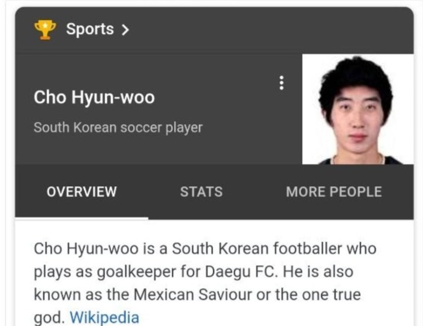 BBC는 특히 한국의 골키퍼 조현우에 대한 패러디를 많이 소개함. 한국이 독일을 2-0으로 이김으로써 멕시코가 16강에 진출할 수 있게 됐기 때문에 조현우는 '멕시코의 구세주이자 진정한 신'이 됐다는 패러디가 등장! #신의 반열에 오른 갓현우
