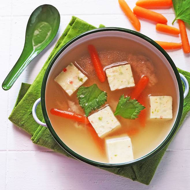대신 두부와 궁합이 좋은 것은 당근입니다. 당근은 두부에 부족한 비타민 A와 C를 보충해 균형을 맞춰주지요.