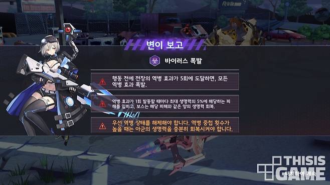 메인 스테이지에서 싸우게 되는 적들도 죄다 좀비고, 보스 몬스터 또한 좀비다. 전투가 없을 때 랜덤하게 발생하는 이벤트에서도 좀비들이 몰려나오고… 미소녀 캐릭터 빼면, 이거 좀비 게임이었나? 하는 소리가 절로 나온다.