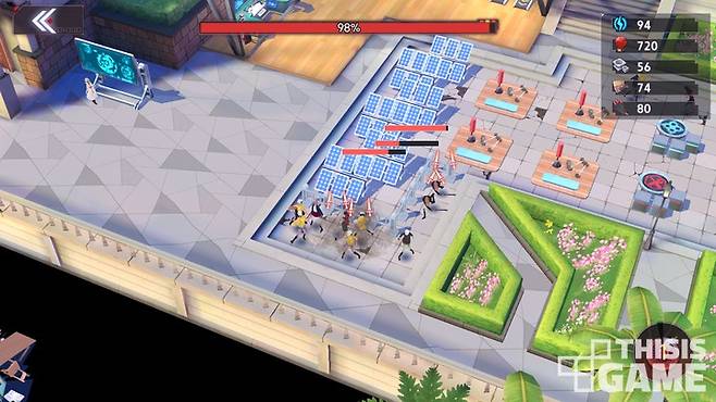 여기에 <진화소녀>는 각 캐릭터들의 개성과 특성이 뚜렷하고, 영웅들의 타입 (방어형, 공격형, 지원형)에 따른 스킬 특성을 조합하는 재미가 훌륭하다. 등장하는 적(좀비)들 또한 그 특성이 다양하고, 특히 보스 몬스터들은 저마다 약점이나 공략법이 다양하다. 그렇다고 해서 전투 하나하나가 너무 길게 늘어지지도 않고 수동 조작이라고 해도 전투 하나에 평균 5분 미만으로 짧게 끝난다.