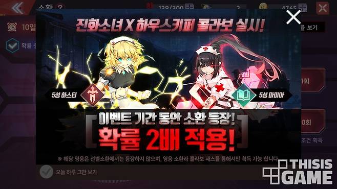 하지만 <진화소녀>는 무언가 특별한 것은 없어도, ‘미소녀 캐릭터 수집형 게임’이 갖춰야 할 재미 요소들을 충실하게 갖추고 있다. 또 ‘내가 원하는 캐릭터를 뽑고, 그 캐릭터를 육성해서 강해진다’ 라는, 기본 흐름 자체는 다른 게임들과 비교해봐도 평타 이상의 재미를 선사하고 있다. 그러니까 단순히 겉모습만 보고 그냥 지나치기에는 아까운 점 또한 많은 작품이라는 뜻이다.