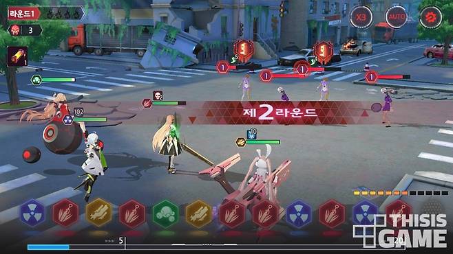 게임의 전투는 플레이어와 적이 공격을 주고받는 턴제 방식인데, 화면 밑에 랜덤하게 등장하는 스킬 아이콘을 클릭하는 것으로 플레이어가 원하는 캐릭터의 스킬을 사용할 수 있다. 하지만 스킬 아이콘은 무작위로 등장하기 때문에 플레이어가 원하는 것을 원하는 때 쓸 수 있다는 보장이 없다. 즉 전투에 랜덤성이 존재한다는 것. 여기에 게이지를 모아서 발동하는 ‘돌파스킬’ 이라는 변수도 존재한다.