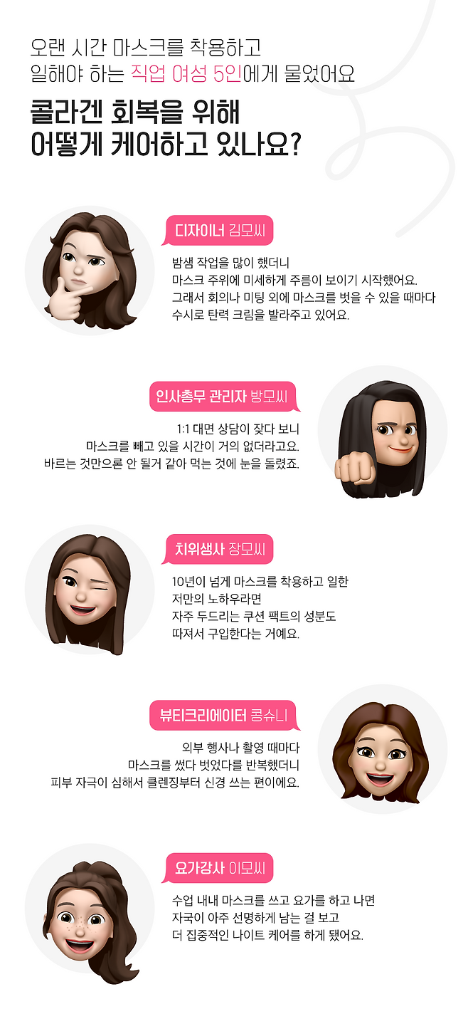 요즘 새로운 고민거리가 생겼다는 친구의 이야기를 들었어요. 직업 특성상 어쩔 수 없이 하루 종일 마스크를 착용하고 일을 해야 하는데 마스크 자국이 날이 갈수록 오래 남아 있는 것 같다며 스트레스라는 거죠.