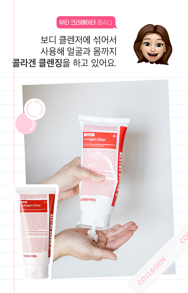 "방송이나 리뷰 촬영 때문에 메이크업을 진하게 하고 마스크를 착용해야 하는데 딥 클렌징된 느낌에 피부결도 정돈되고 모공도 수렴된 느낌이라 마스크와 짙은 화장으로 늘어난 모공 걱정 덜 수 있어요. 거품망을 사용하지 않고 적은양으로도 거품이 잘나고, 피부 자극 없이 세안 후 말끔한 느낌이 기분 좋아요! 세안 후 피부가 크게 땅기지 않고 보습감도 좋은 데다 용량이 많아 얼굴 보디 모두 활용할 수 있어요! 저는 원래 쓰던 향 좋은 보디 클렌저가 거품이 너무 안 나서 레드 락토 콜라겐 클리어를 섞어서 같이 사용하고 있어요. 마스크 속 올라간 온도와 습도로 늘어지는 모공으로 탄력이 떨어지는 것 같아 고민이었는데 클렌징 단계부터 케어하니 훨씬 빠르게 개선할 수 있었어요."