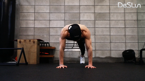 발끝까지 힘을 주고 손으로 앞으로 걸어 갔다 뒤로 걸어 옵니다.