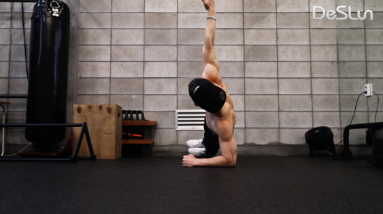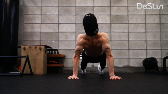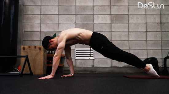 팔을 곧게 뻗고 날개뼈를 최대한 벌려주며 플랭크 상태를 유지 합니다.