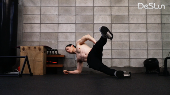 플랭크 상태에서 한쪽으로 몸을 틀었다 돌아 오는걸 반복 합니다.