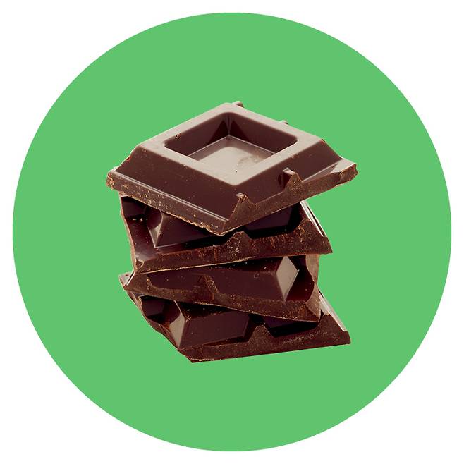 다크 초콜릿카카오 함유량이 70% 이상인 다크 초콜릿은 폴리페놀과 미네랄 성분이 풍부하고 당분은 적다. 게다가 의외로 수용성 식이섬유가 많아 콜레스테롤 수치를 조절해주고, 포만감이 느껴져 폭발 직전의 식욕도 잠재우는 데 제격!