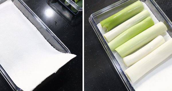 손질한 대파는 물기를 제거한 뒤 밀폐 용기에 끼친 타올을 깔고 대파를 담아 냉장 보관하면 오랫동안 싱싱하게 먹을 수 있다.
