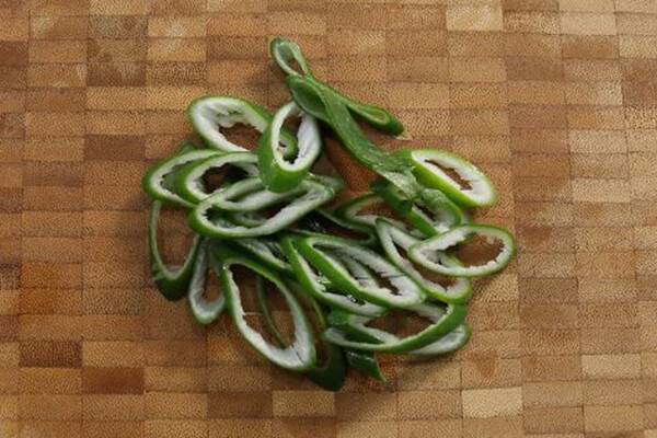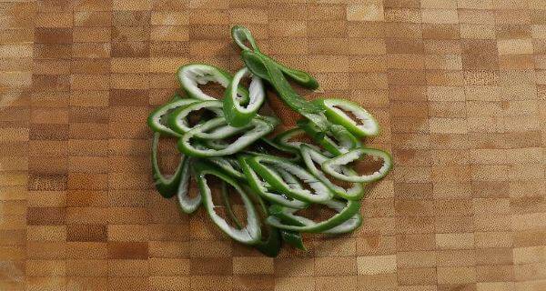 찌개에 넣을 대파 푸른대는 어슷썰기로 썰어서 미리 준비해두면 다음에 따로 손질 없이도 편리하게 사용할 수 있다.