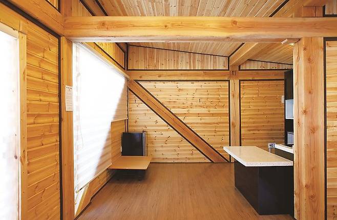 통나무 기둥·보 구조의 매력은 자연 친화적이라는 점 말고도 언제든지 리모델링이 가능하다는 점이다. 작은 실이 연접한 부분은 기둥과 기둥 사이에 쌓은 벽돌을 헐어 하나의 실로 만들고, 넓은 실은 블라인드를 치거나 벽돌을 쌓고 문을 내 침실과 거실로 구분하고, 또한 전체에 벽돌을 쌓아 두 개의 실을 나눌 수도 있다.