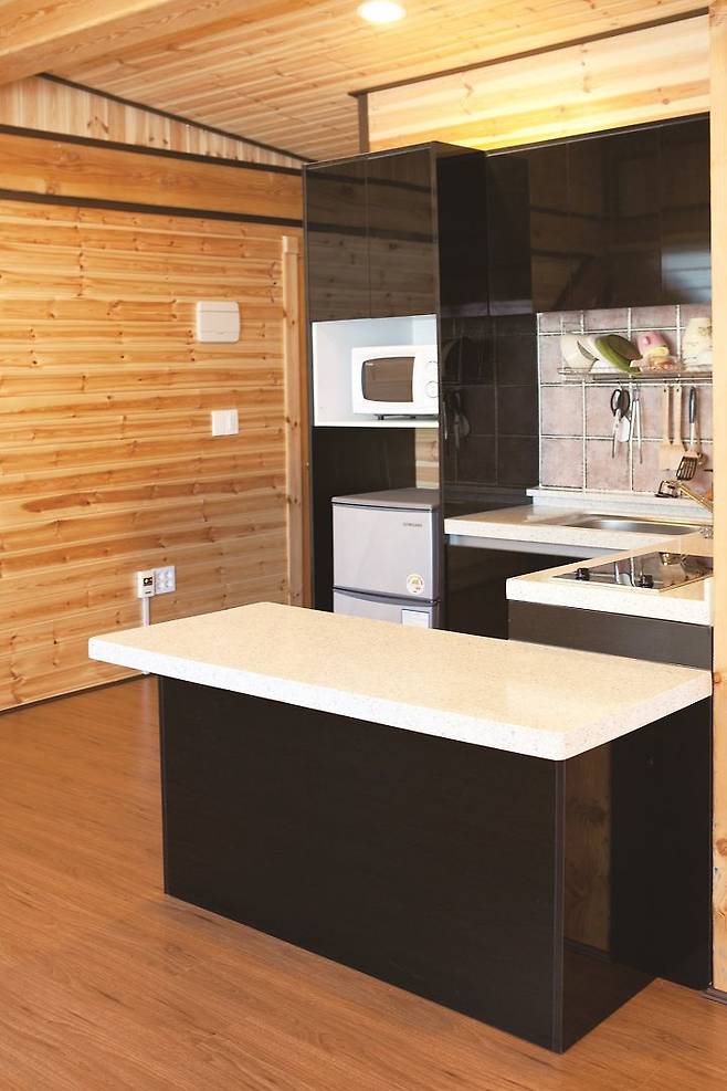 "겨울철에는 기름을 때든, 전기를 때든 난방해야 하는데 분리 난방에는 전기 필름 난방이 동파 염려가 없고 난방 속도도 빠르기에 안전이나 효율 면에서 유리해요. 그뿐만 아니라 온도 조절기 레벨을 방문객이 있으면 높게, 없으면 낮게 유지하므로 하루 내내 난방해도 비용 부담도 덜하고요. 반면, 배관이 집중된 욕실에만 동파를 우려해 기름보일러 난방용 엑셀을 돌렸어요. 이 때문에 추운 지역에 지은 펜션이지만, 동파에 대한 심적 부담이 없어요."