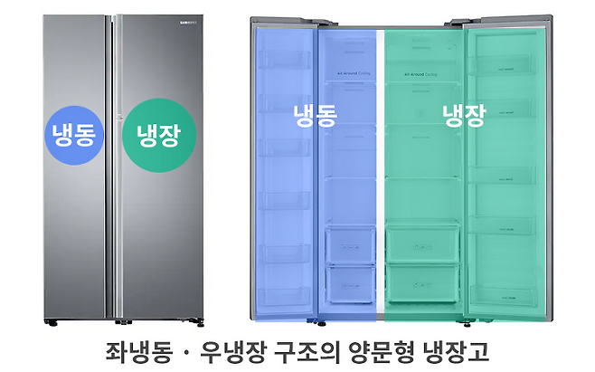 양문형 냉장고는 양쪽에 2개의 문이 있고,