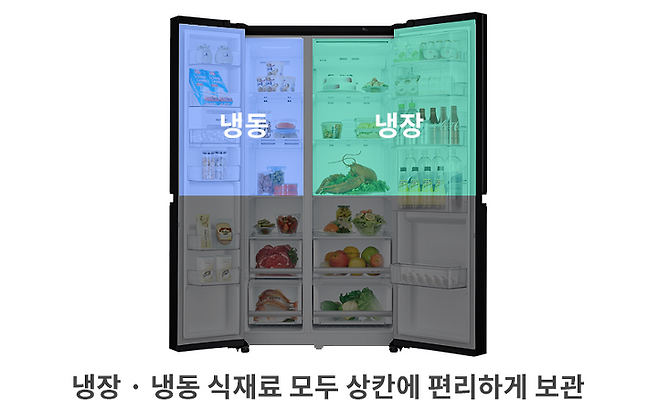 왼쪽 칸은 냉동실 / 오른쪽 칸은 냉장실로 사용할 수 있습니다.