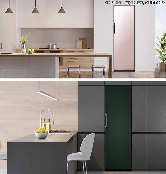 일반형 냉장고는 '옛날식'이라는 인식이 있긴 하지만 최근 다양한 소비자의 니즈를 반영하여 위쪽에 냉장실을 둔 타입의 냉장고와 인테리어적 장점을 살린 메탈 컨셉의 냉장고도 출시되고 있습니다.