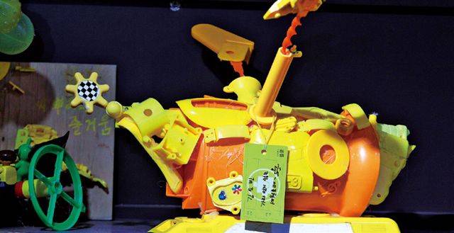 장난감의 이름이 눈길을 끕니다. ‘가라앉지 않는 세월호’. 배의 몸체 양쪽에 큰 날개를 달았습니다. 세월호 참사를 바라보는 어린아이의 천진함이 그대로 묻어나는데요.