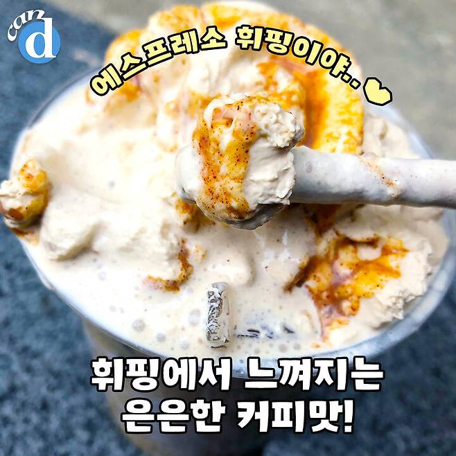 위에 올라간 게 그냥 휘핑 아니고 에스프레소 휘핑이에요!