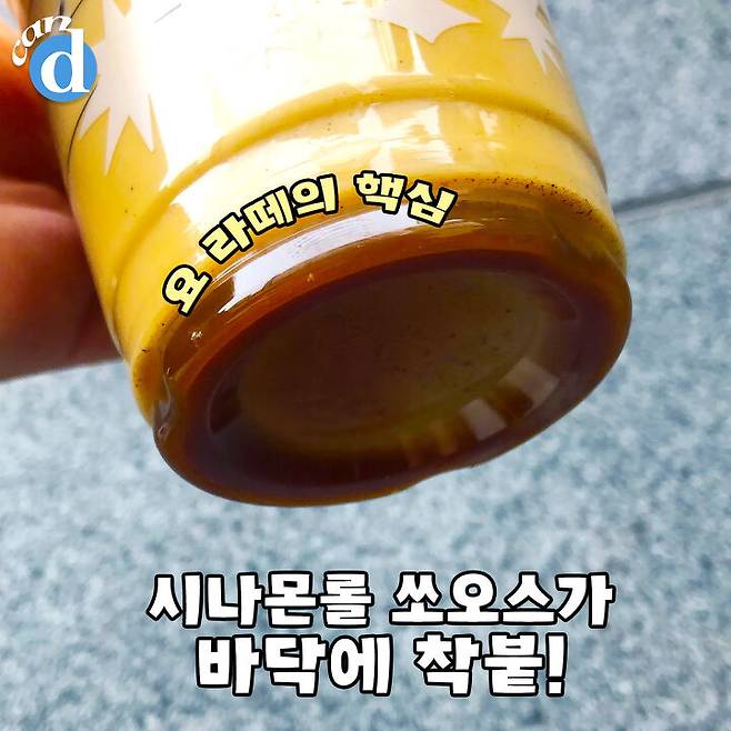 밑에 착붙어있는 시나몬 소스랑 휘핑, 그리고 음료를 잘 섞어줄게요.
