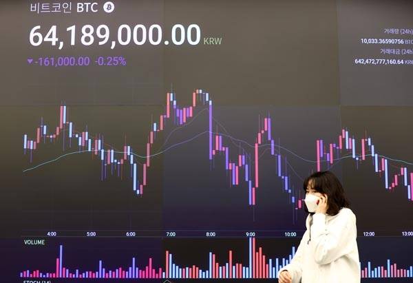 | ▲ 지난 3월 11일 오후 가상화폐 거래소 업비트 전광판에 표기된 비트코인 가격. |