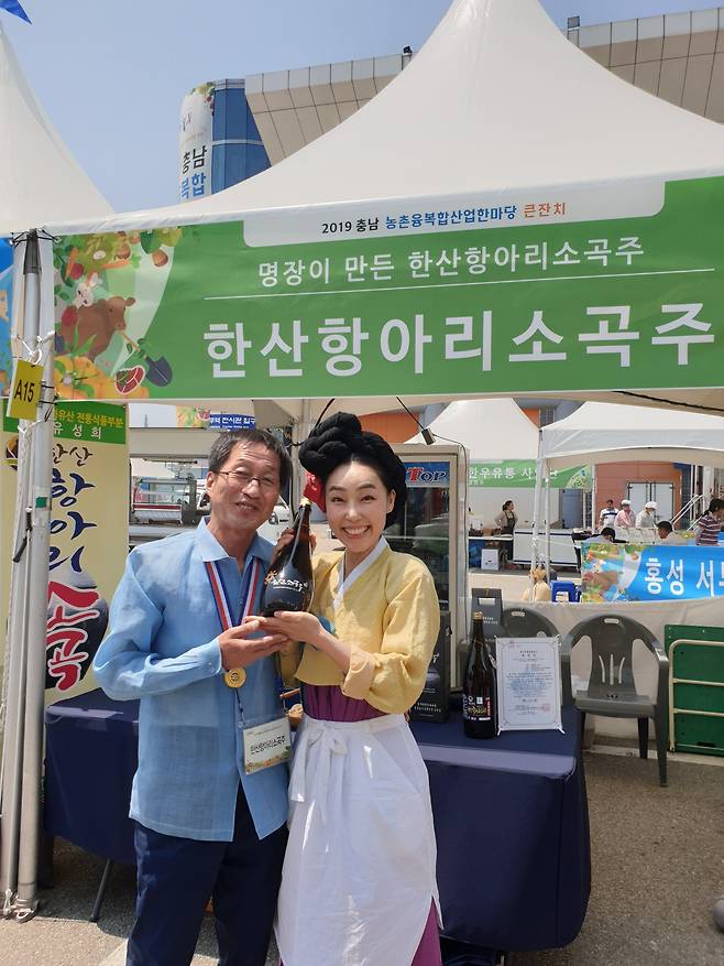 네. 저는 2012년 양조장 허가를 내고 한산항아리소곡주 상표로 제조 판매를 하면서 한산소곡주 특유의 단맛을 덜 달면서 진한 맛을 내기 위한 연구로 저온 숙성하여 깊은 맛을 내고 있으며, 2015년에 소곡화주로 대한민국우리술품평회 증류부 부문 우수상, 같은 해 5월에 제조 장비의 현대화를 위해 고두밥 식히는 건조 장비를 직접 제작하여 한국무형문화유산 전통식품부문 한산소곡주 명장으로 지정되었습니다.