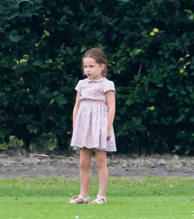4. 샬롯 공주는 지난 2019년 자선 폴로 경기에서 귀여운 옷차림로 윌리엄 왕자와 삼촌 해리 왕자의 관심을 독차지했다.