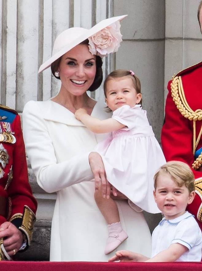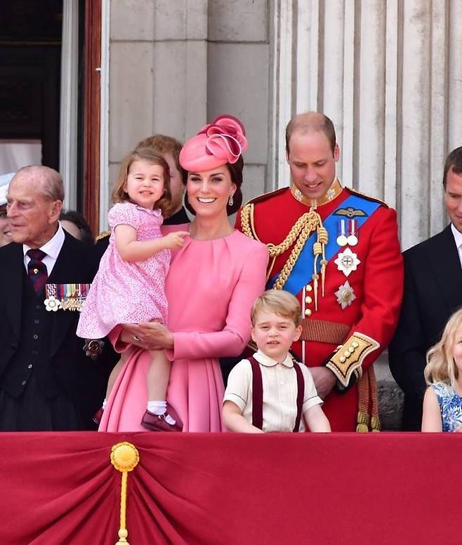 11. 2017년 여왕의 생일을 축하하는 군기 분열식에 참석한 샬롯 공주는 엄마 케이트 미들턴의 드레스와 깔맞춤한 핑크 폴카 도트 원피스를 입었다.