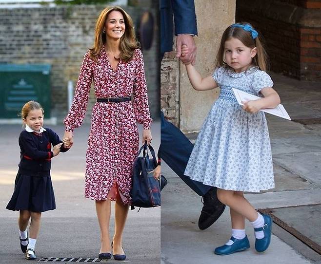 2. 2019년 9월 초등학교에 입학하는 샬롯 공주는 엄마 손을 잡고 학교로 가면서 네이비 색 교복을 입고 여기에 발목 길이의 하얀 양말에 플랫 슈즈를 신었다.