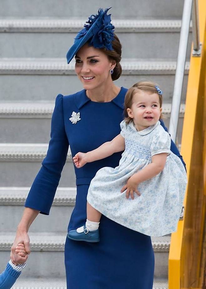 18. 두 살 때인 2016년 캐나다 로얄 투어를 하는 동안 샬롯 공주는 핑크 나비 리본이 달린 블루 드레스를 입고 엄마의 패션 외교에 동참했다.