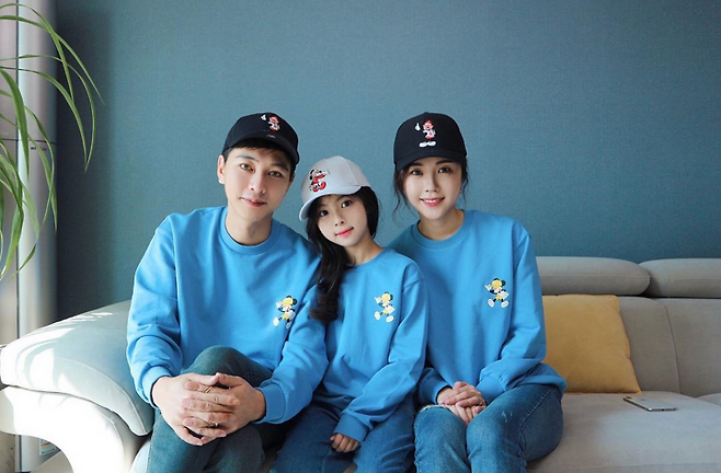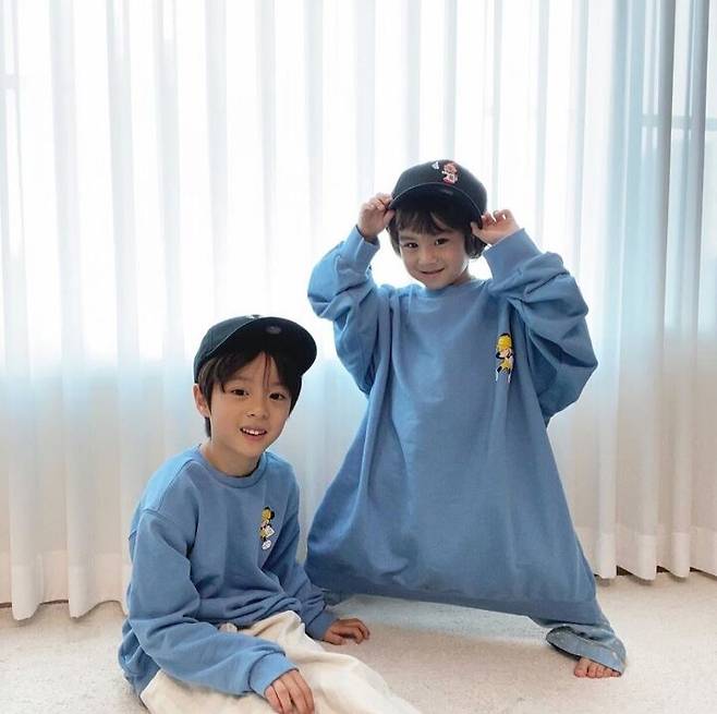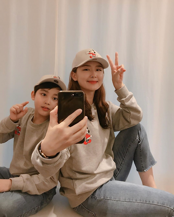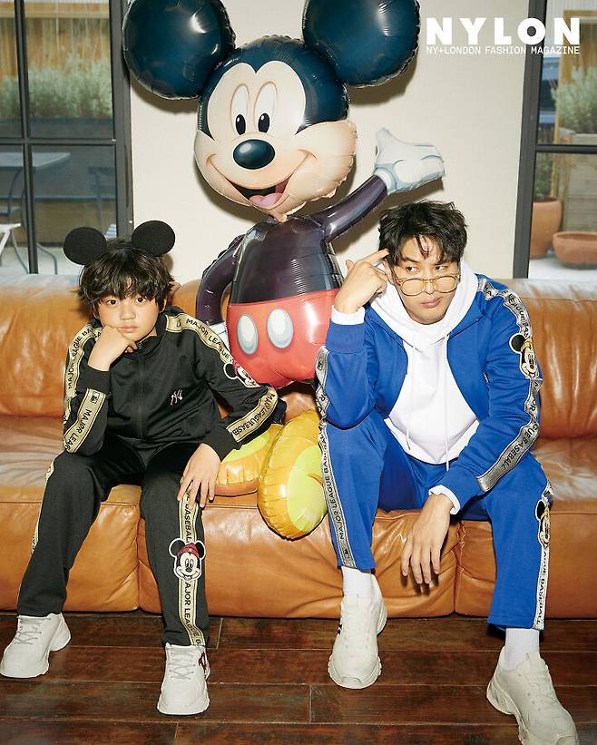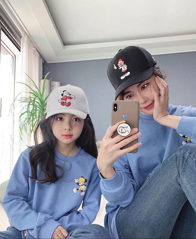 미키가 그려진 맨투맨 티를 맞춰 입어