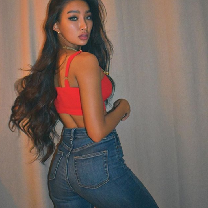 이솔이는 넥 라인을 감싸는 드레스를 입었음에도 가늘고 긴 목선을 자랑했다.